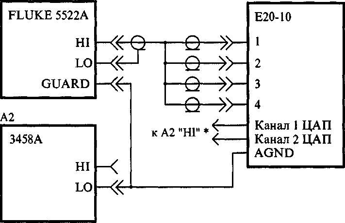 4) подключить выход «DAC2» L-502 к входу мультиметра 3458А;