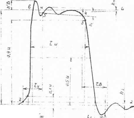 Lop' Гс - длительность срронта, среза■ ty ,1& - время установления f воитановления, h'в, h "в - дыдросы на вершине и в паузе, h, h 2 ' неравномерности вершины и Ь паизе,