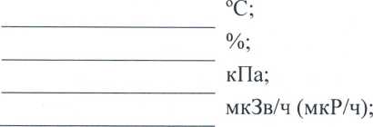 Условия поверки: температура относительная влажность атмосферное давление фон гамма-излучения