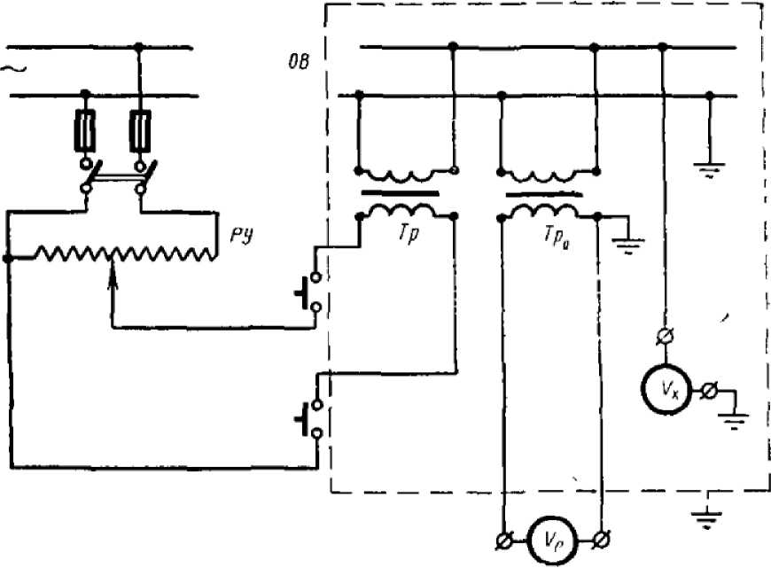 В киловольтметрах, кроме того, испытывают прочность изоляции первичной цепи осветительного трансформатора каждого прибора по отношению к корпусу. ,