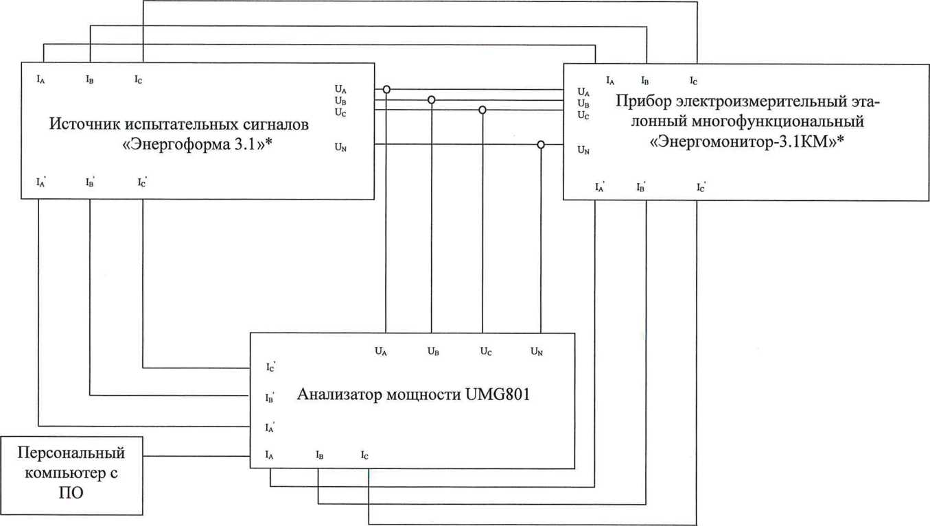 Прибор электроизмерительный эталонный многофункциональный «Энергомонитор-3.1.КМ», per. №52854-13 и источник переменного тока и напряжения трехфазный программируемый «Энергоформа-3.3-100» (далее поверочная установка); |