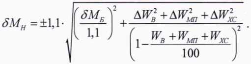 11.2 Относительную погрешность измерений массы нефти в соответствии с ГОСТ 8.587, 6Мн, %, вычисляют по формуле:
