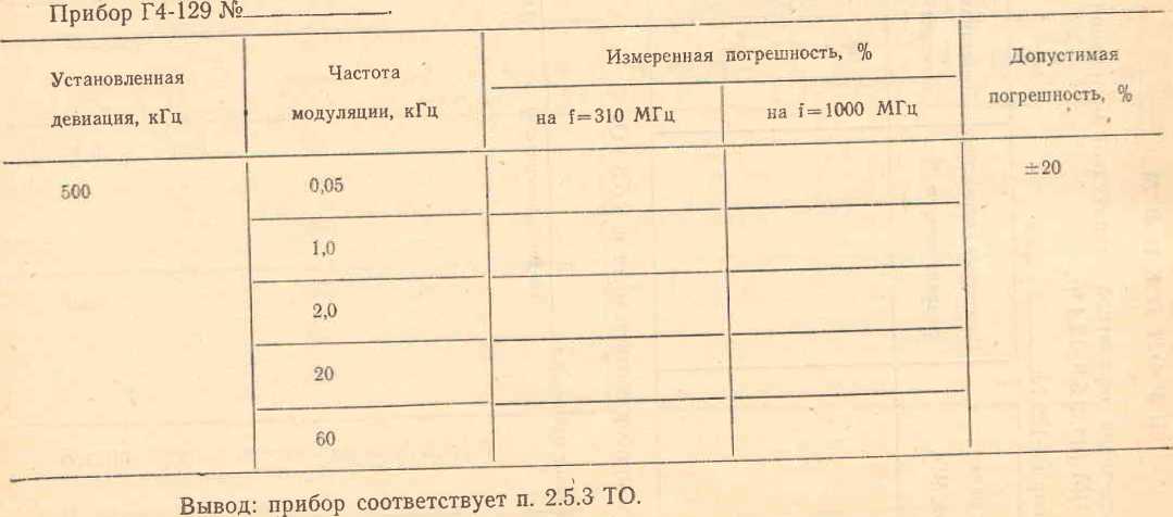 2.5.4. Коэффициент гармоник (Кг ) формы огибающей час-тотно-модулировапного выходного сигнала при внутренней модуляции на частоте 1000 Гц при девиации частоты выходного сигнала 500 кГц не более 2%, в диапазоне .модулирующих частот не более 5,%.