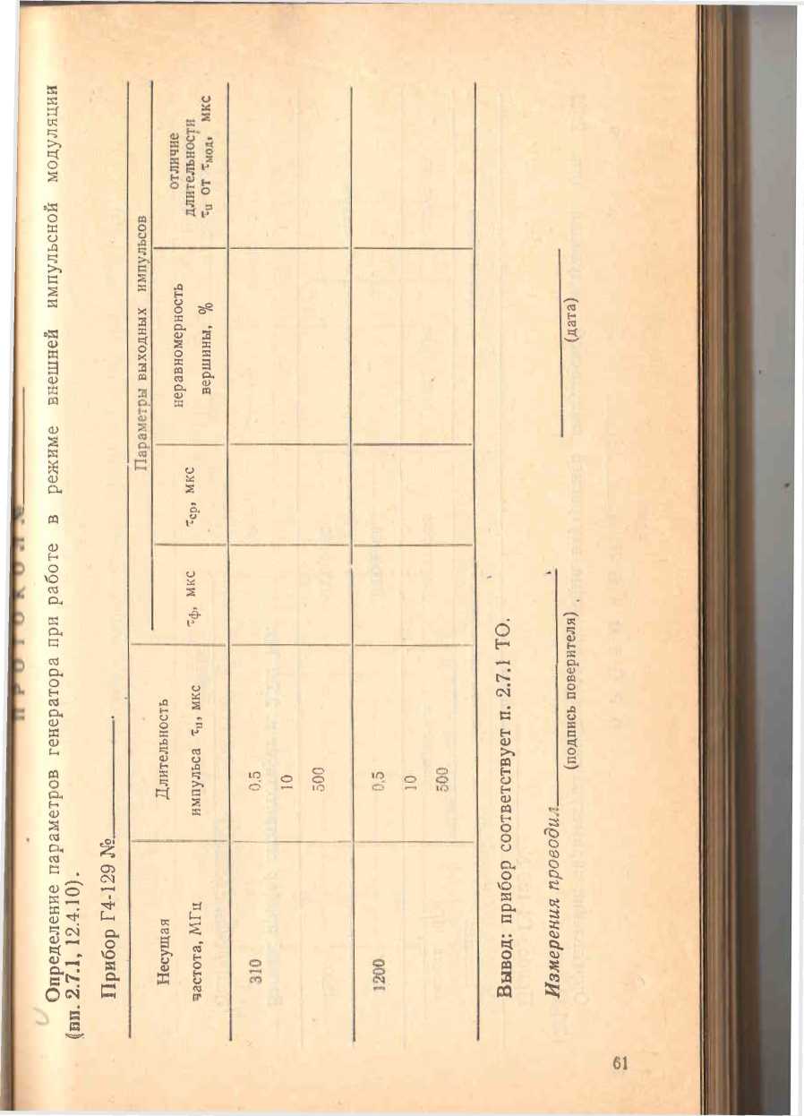 2.7.2. В режиме внутренней амплитудно-импульсной модуляции прибор выдает высокочастотные импульсы «меандр» с час готой следования (1000± 100) Гц. Отношение полупериодов меандра отличается от 1 не более чем па ±10%.