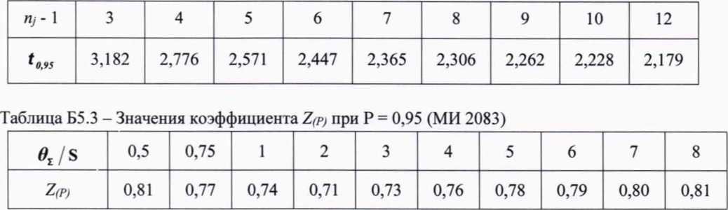 П р и м е ч а н и е - Допускается как промах исключать результат измерения, у которого Ку по значению наиболее (в большую или меньшую сторону) отличается от значений Ку других измерений в этой же точке расхода, не проводя анализ по Б5.1.1 * Б5.1.3.Таблица Б5.2 - Значения квантиля распределения Стьюдента t (ГОСТ 8.207)