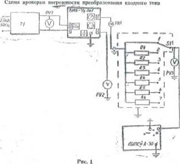 4) устанавливая переключатель Si uoouepejuro и положение 1. '4. 3. 4. 5, 0. 7 а вы ста ап ня по прибору РА1 токи мяч по прибору ГУЗ налряж&шя, указанные и табл. 5. фиксировать напряжения аналогового выхода по прибору PV2. При каждом нзмерешш напряжение апвлигового выход» должно соответствоиэть’ напряжению, указанному в табл. 5 дли каждого установленного тока по прибору РА! ;ыи для каждого входного капряжс-пип. устаномешюго no upnfopy PV3. Затем п<> градуироплчмоЯ кршк41 (прнлингскке 3) определить гтвченне праюрвзопанпот входного юна.