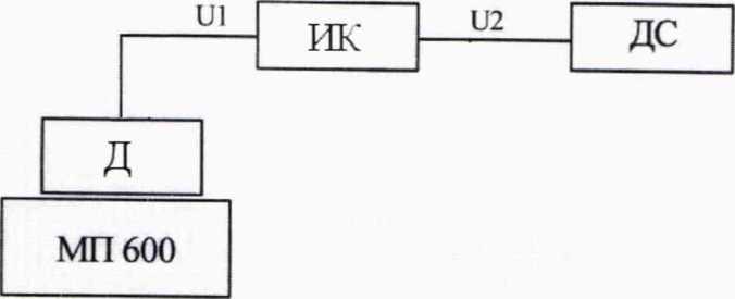 ДС - диагностическая станция (ДК или компьютер); ИК - измерительной канал аппаратной платформы; МП 600 - манометр грузопоршневой МП 600;