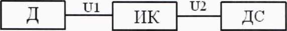 ДС - диагностическая станция (ДК или компьютер); ИК - измерительной канал аппаратной платформы; Ul, U2 - технологические кабели;