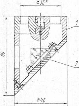 Угловая мера-60° 1-го класса, типа II, или 90° 1-го класса, типа III по ГОСТ 2875—62 |