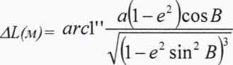 где а - большая полуось эллипсоида (WGS-84: а = 6378137 м); е - первый эксцентриситет эллипсоида (WGS-84: е2 = 6,6943662 -10'3);