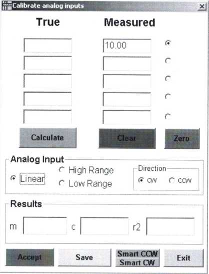 - установить в поле «Measured» верхнего ряда угол закручивания как можно ближе к нулевому значению. При этом должно быть выполнено условие, что показание на дисплее показывающего устройства машины на несколько Сьн может превышать нулевое значение. Установка угла производится нажатием кнопок «Smart CCW» зеленого цвета и «Smart CW» синего цвета. Данные кнопки обеспечивают поворот вала машины с заданной скоростью против и по часовой стрелке;