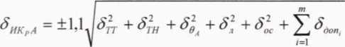Границы интервала суммарной абсолютной угловой погрешности 6 в минутах и границы интервала относительной погрешности в % определяются по формулам: