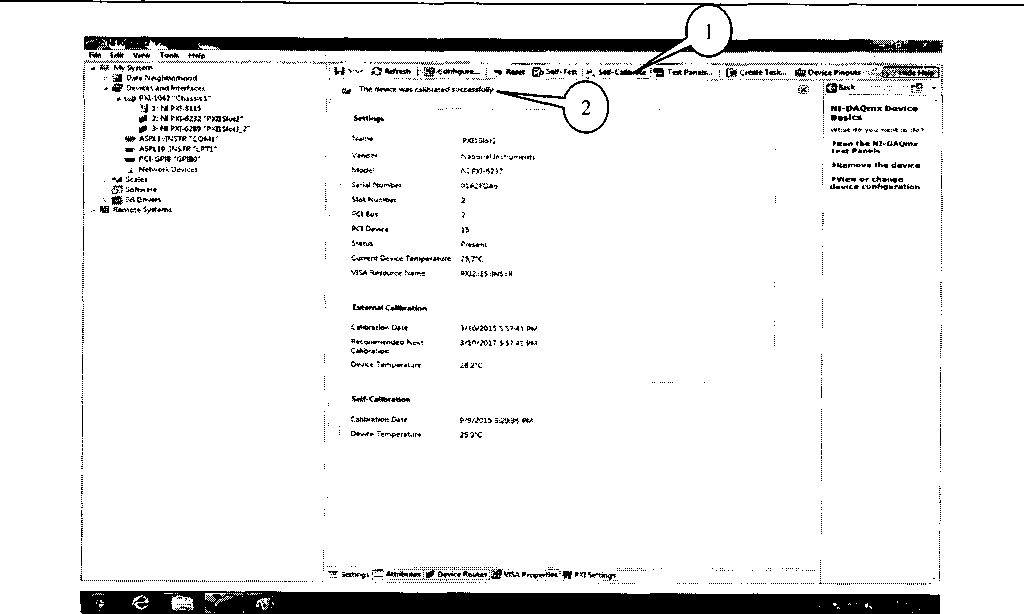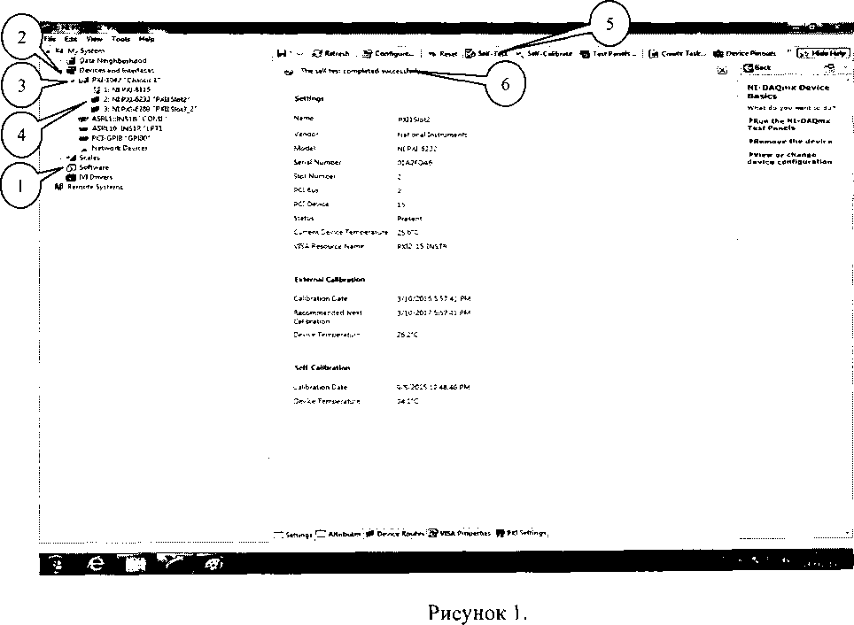 7.2.3 В окне программы (рисунок 1) в меню «Software» (1) выбрать «NI-DAQmx». Убедиться в том, что в правом поле окна в соответствующих столбцах отображаются наименование ПО (драйвера) «NI-DAQmx Device Driver» и номер его версии.