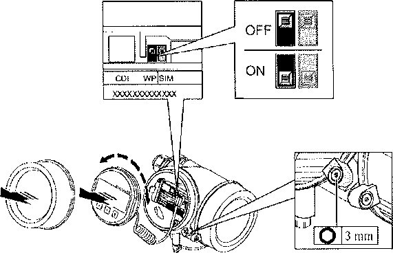 В уровнемерах конструктивно предусмотрено наличие защиты от записи посредством переключателя блокировки. Переключатель блокировки может иметь два состояния: "Off ("Выключен") или "On" ("Включен") (рис. 3).