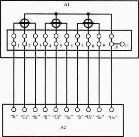 1) Подключить GPT-79603 между цепями тока и напряжения, указанными в таблице 3.