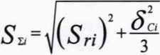 Суммарное среднее квадратическое отклонение оценки измеряемой величины вычисляют по формуле