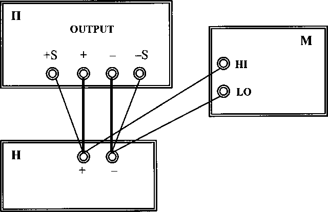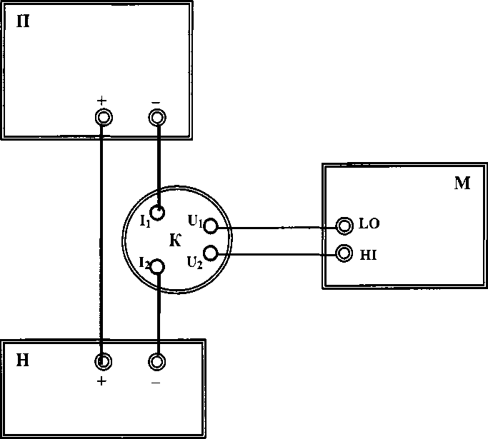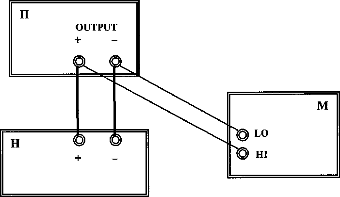 Рисунок 7.10 П - поверяемый прибор; Н - электронная нагрузка; М - мультиметр