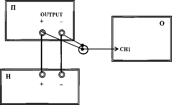 П - поверяемый прибор; Н - электронная нагрузка; О - осциллограф