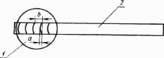 Плоскую стеклянную пластику помещают под небольшие углом па первый участок рибочей поверхности бруска так, чтоб» вершЕпза воздушного клина, образованного поверхностями пластины и бруска, была (щпранлена в сторону одного n:i коротких .ребер бруска, Слегка притирая пластину к поверхности бруска, добиваются появления интерференционных полос и ориентируют их в поперечном направлении. Выбран полосу с наибольшим изгибом, определяют значение изгиба а в долях интерференционной ПОЛОСЫ (см. черт. 1). За ширину интерференционной полосы Ь принимают расстояние между серединами двух соседних полос одинакового цвет-з. ■ ■'