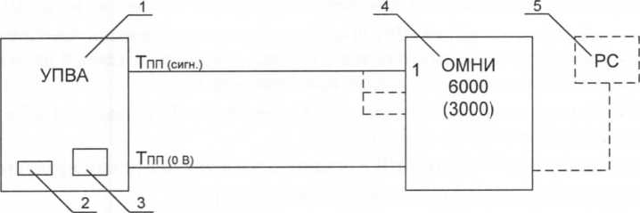 1-УПВА; 2 - цифровой дисплей УПBA; 3 - клавиатура УПВА; 4 - ИВК ; 5 - персональный компьютер (PC)