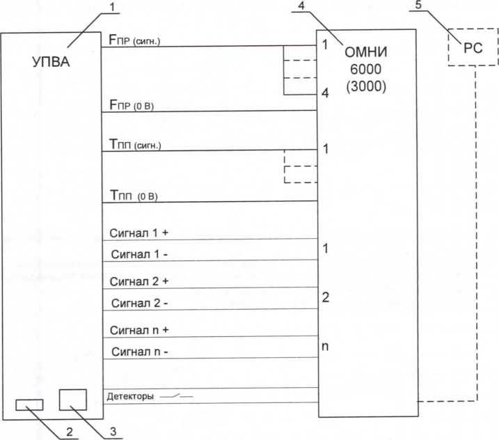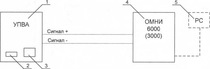 1 - УПВА; 2 - цифровой дисплей УПВА; 3 - клавиатура УПВА; 4 - ИВК; 5 - персональный компьютер (PC)