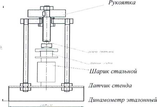 - приложить максимально допустимую нагрузку на последовательно установленный динамометр эталонный и выносной тензометрический датчик стенда;