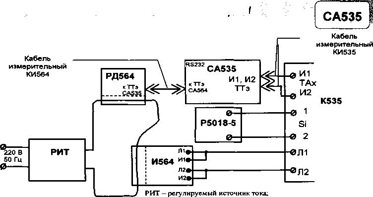 К535 - устройство поверки измерительных трансформаторов; И564 — преобразователь тока;