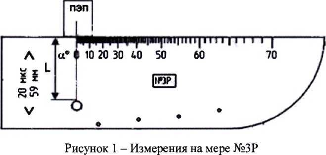 8.4.22. Зафиксировать результат измерения глубины залегания дефекта Ьизл1, мм. Выполнить измерение пять раз, рассчитать среднее арифметическое значение глубины залегания дефекта Lcp, мм.