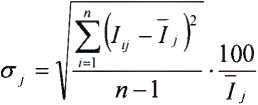 где Iij - /-результат измерения интенсивности для /-го элемента, мкВ нм; п- число измерений интенсивности.
