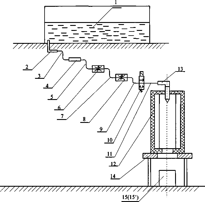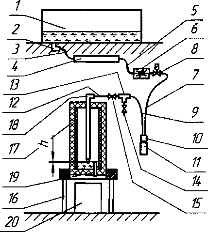 - отсоединяют пробку с трубками от камеры передавливания 11, снимают с конца трубки не оторвавшуюся каплю воды (если она есть) в камеру передавливания 11 и устанавливают емкость на весы;