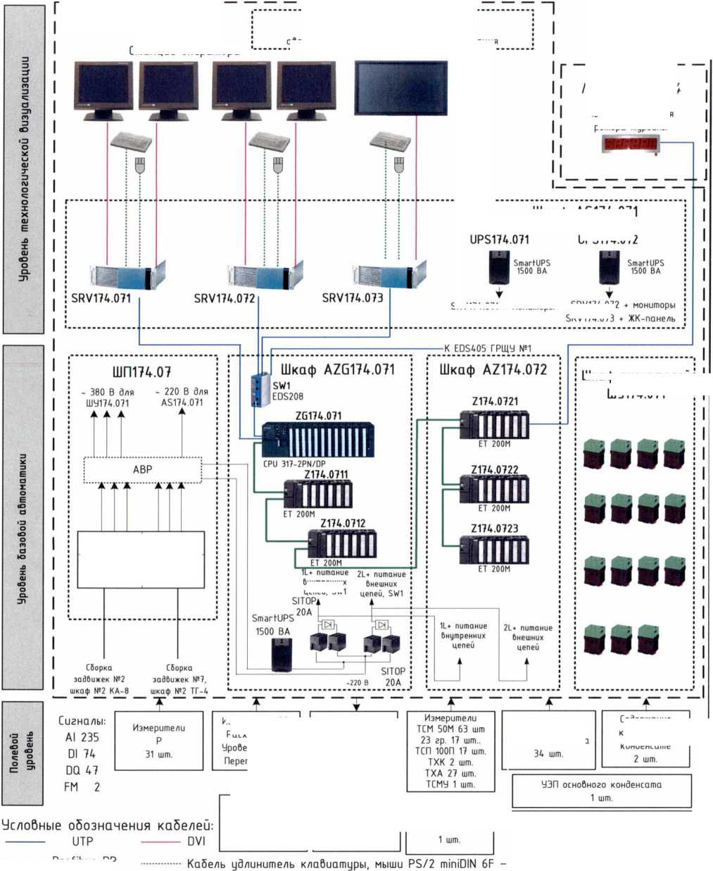 - далее информация о значениях физических параметров технологического процесса в неизменном виде поступает на ИВК, где регистрируется в базах данных серверов и отображается на мнемосхемах, гистограммах и трендах в единицах физических величин.