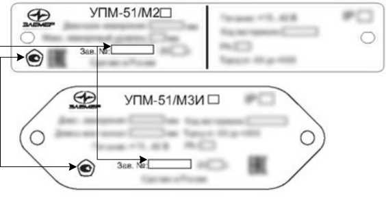 Знак утверждения типа наносится на табличку, прикреплённую к корпусу уровнемеров, способом лазерной гравировки и на поликарбонатную пленку, наклеиваемую на переднюю панель корпуса уровнемеров ЭЛЕМЕР-УПМ-51/М2И, ЭЛЕМЕР-УПМ-51/М3И, способом шелко-графии (рисунок 8).Заводской номер наносится на табличку, прикреплённую к корпусу уровнемера, способом лазерной гравировки (рисунок 8).