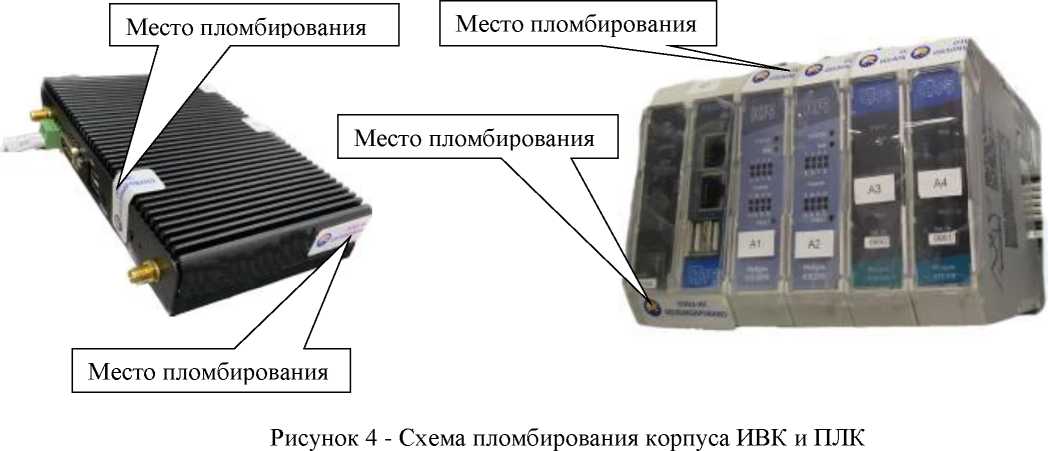 Механическая защита от несанкционированного доступа к ПЛК\ИВК осуществляется пломбированием наклеек на корпус встраиваемого компьютера ИВК и\или ПЛК БИОИ для предотвращения вскрытия корпуса и выполнения операции замены системного программного обеспечения (ОС встраиваемого компьютера ИВК, firmware ПЛК и т.п.), как показано на рисунке 4.