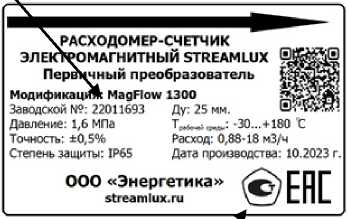ТУ 26.51.52-009-38320799-2023 «Расходомеры-счетчики электромагнитные Streamlux. Технические условия».