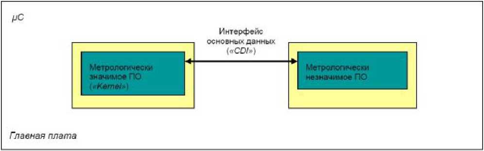 Метрологически значимая часть ПО отделена от метрологически незначимой части с предоставлением приоритета выполнению метрологических задач, обмен данными между ними осуществляется при помощи защитного интерфейса основных данных («CDI»).