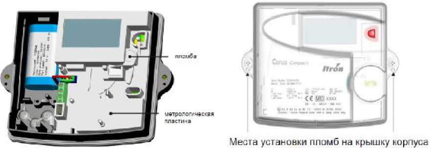 Конструкция корректора предусматривает возможность установки пломб, предназначенных для защиты от несанкционированного доступа к следующим элементам корректора: