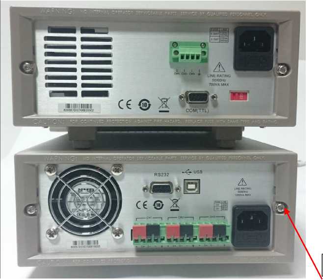 Для предотвращения несанкционированного доступа к внутренним частям источников предусмотрена пломбировка одного из винтов на задней панели. Схема пломбировки приведена на рисунке 2.