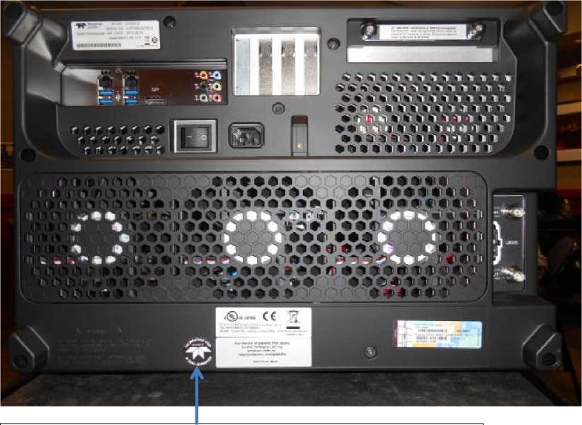 Внешний вид задней панели осциллографа, а также схема пломбировки для защиты от несанкционированного доступа приведены на рисунке 2.