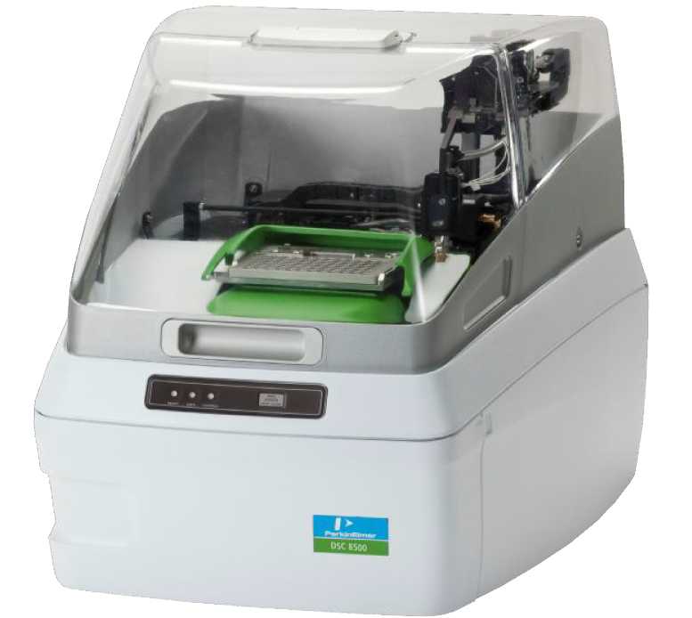 Принцип действия дифференциальных сканирующих калориметров DSC модели 6000 и 4000 основан на зависимости разности температур анализируемого образца и образца сравнения с известной теплоемкостью от количества поглощенной (выделенной) теплоты, одинаковой для обоих образцов. Калориметры модели 8500 и 8000 использует принцип компенсации мощности: зависимость разности мощностей, подаваемых на каждую ячейку (с анализируемым образцом и эталонным веществом) при одинаковой температуре ячеек, от температуры.